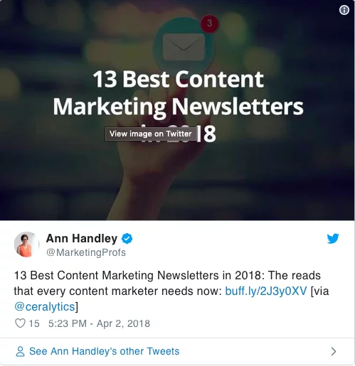 İnfluencer pazarlama stratejisini kullanmak için de çeşitli stratejiler vardır. Onlardan her zaman içeriğinizi paylaşmalarını, tanıtmalarını veya markanızdan bahsetmelerini istemeniz gerekmez. İstemek yerine, belirlediğiniz influencer’ları teşvik ederek de iletişime geçebilir ve etkileşime girebilirsiniz. Hedef kitlenize seslenebilmeniz için Ceralytics bir dizi içerik pazarlama bülteni oluşturun. Bunun içinde tanınmış bir pazarlama uzmanı olan Ann Handley’e de bahsetti ve o da 433.000 Twitter takipçisiyle organik olarak paylaşarak içeriğin tanıtımını yapmış oldu.