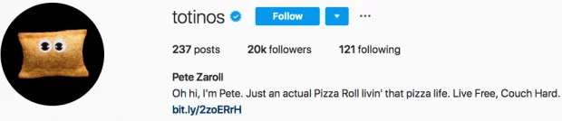 Totinos biyolarında komik bir karakter kullanarak farklı bir yaklaşım benimsiyor.